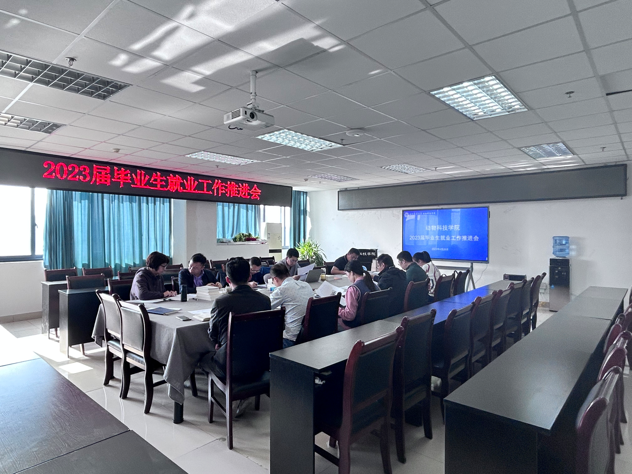 4月25日下午,学院召开2023届毕业生就业工作推进会,学院班子成员、党委办公室相关老师和2023届毕业班班主任参加会议。